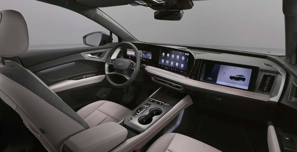 Клиентите могат да очакват и значително увеличение на комфорта и гъвкавостта в изцяло преработения интериор, който се предлага опционално с пакет S line. Централният елемент на просторния интериор е така наречената дигитална сцена: Панорамният дисплей с 11,9-инчов инструментален блок и 12,8-инчов MMI сензорен екран гарантират, че водачът има всичко под око. Опционално се предлага 12-инчов дисплей за пътника с персонализиран дизайн в режим на готовност. Audi разширява функциите за комфорт и развлечение с новата инфотейнмънт система One Connected. Обучаващият се Audi асистент управлява функциите на автомобила чрез гласови команди и отговаря на въпроси относно ръководството за употреба на автомобила. Чрез връзката си с ChatGPT пътниците могат да провеждат проучвания и да взаимодействат с автомобила, използвайки естествен език. Динамичното интерактивно осветление, новата централна конзола и две охлаждани индуктивни зарядни подложки, всяка с мощност на зареждане от 15 вата, допълнително подобряват комфорта и приятната атмосфера. Меката обвивка, с голямата си площ на приложение, простираща се от вратите по цялата ширина на арматурното табло, създава непрекъснато, висококачествено усещане за простор. Вертикалните вентилационни отвори подчертават ширината на кокпита.