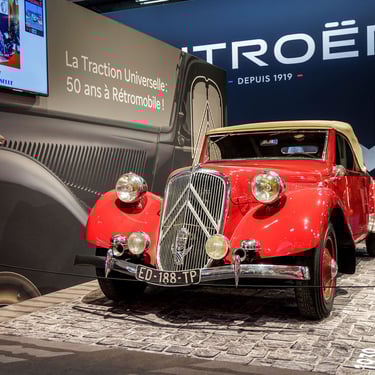 За да отбележи половин век Rétromobile, Citroën – в партньорство с клуба La Traction Universelle – представя уникалния червен Traction Avant 15-6 Cabriolet (6-цилиндров) от 1939 г. Този изключителен автомобил е един от едва трите автентични прототипа в света и е бил изложен още на първото издание на Rétromobile през 1976 г. Неговото завръщане символизира петдесет години лоялност и споделена страст.