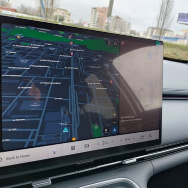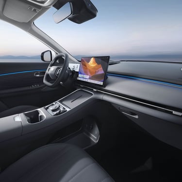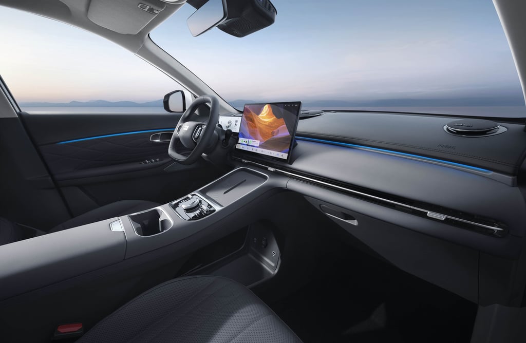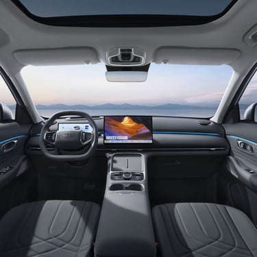 В най-общи линии казаните по-горе думи важат в същата сила и за вътрешността на автомобила, която е просторна, сравнително качествено направена и добре оборудвана, но не се отличава с нещо особено нито на фона на конкуренцията, нито спрямо останалите модели на конзерна Geely - атмосферата се доминира от голям сензорен екран, монтиран вободно в средата на таблото, а на издигнатата централна конзола имаме безжично зареждане на смартфон в предната част и все пак няколко физически бутона по-назад, предназначени за командване на климатичната инсталация, а между тях и подлакътника са позиционирани поставките за чаши и бутилки - от ергономична гледна точка, въпросните са разположени твърде назад и твърде високо, за да бъдат наистина удобни. Иначе картината е добре позната от почти всеки не се отличава от всеки друг съвременен китайски модел от подобна категория - относително добре изглеждащи на вид и допир меки пластмаси, вентилационни отвори и бутони за прозорците, които вече сме виждали и при други марки, както и на моменти доста отвличащо вниманието на водаа от трафика управление на функциите през тъчскрийна. Две от нещата, които наистина вероятно биха ви "изкефили" на борда на Geely Starray EM-i, са панорамния покрив, който впечатлява както с площта, така и с оптималното си разположение и радва в еднаква степен седящите на двата реда седалки (и за разлика от редица конкуренти, разполага с наистина солидна и непропускаща светлина и топлина защитна ролетна щора), както и неочаквано добре звучащава аудиосистема FLYME SOUND с общо 16 високоговорителя, два от които са разположени в предните подглавници.
