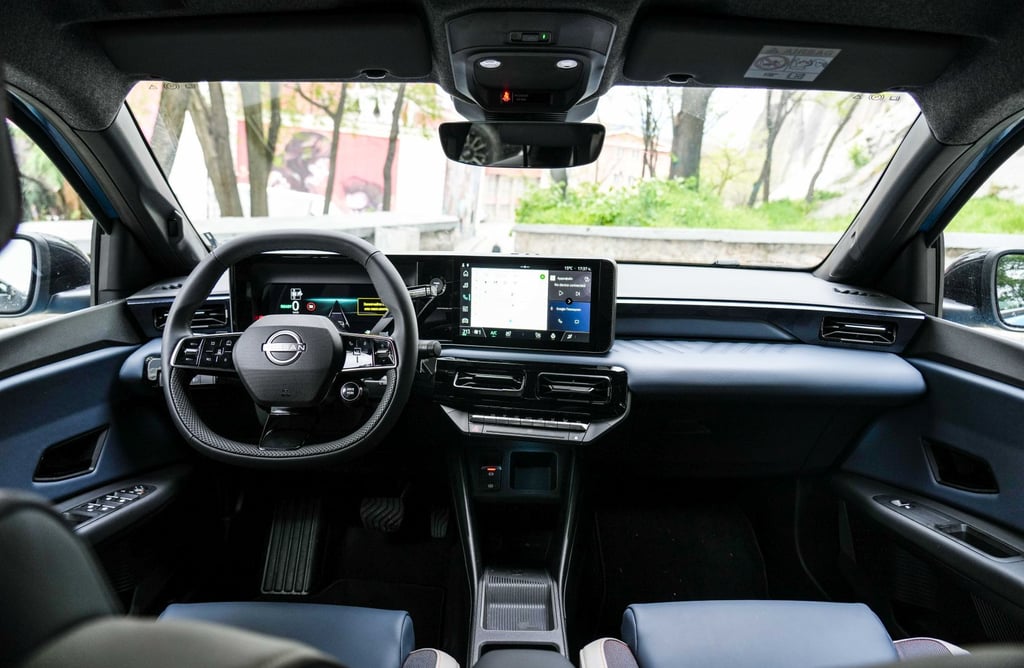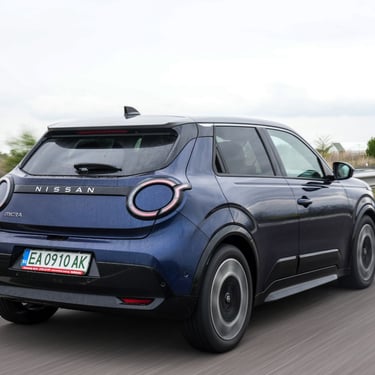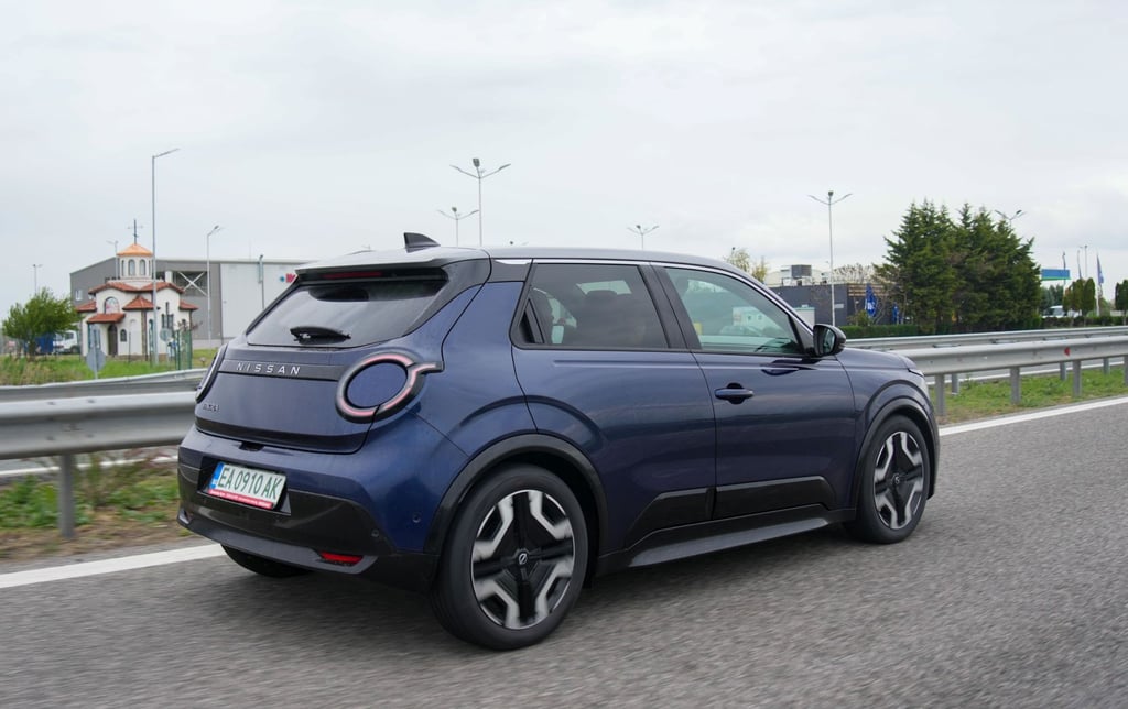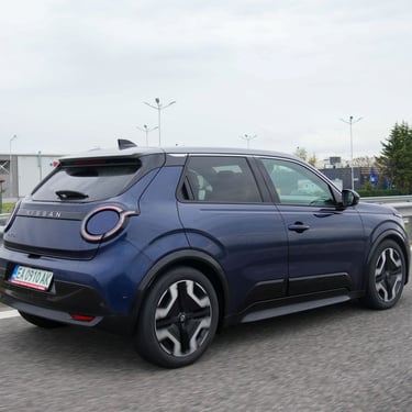 За разлика от други малки електрически модели, при новата Micra на Nissan ускоряването с рязко подаване на газ не се придружава от отривисто превъртане на гуми и подобен вид драматизми - тя има енергичен, но достатъчно спокоен нрав. Всъщност, именно в това японският модел се отличава най-осезаемо от своя събрат Renault 5 - докато френският роднина подскача игриво по неравностите и започва да показва известна склонност към нервност при по-високи скорости, Micra вози отлично, остава стоически стабилна при повече неравности по пътя и противно на първоначалните очаквания се представя отлично даже и на магистрала - автомобилът не помръдваше от зададената му траектория дори по почти наводненото трасе на магистрала Тракия по време на теста. Наред с това, акустичният комфорт при по-висока скорост също е неочаквано добър. Управлението от своя страна е достатъчно отзивчиво, но същевременно работи спокойно и хомогенно, докато при Renault 5 на моменти има склонност към свръхреакция при промяна на положението на волана, без това да води до някакви реални плюсове по отношение на водимостта и без да резултира в усещане за някакъв по-спортен характер. Накратко - в сравнение с Renault 5, Nissan Micra е по-комфортният и по-уравновесеният като пътно поведение автомобил, който се държи по-балансирано както в града, така и при по-дълги преходи - включително по магистрала.