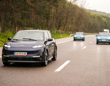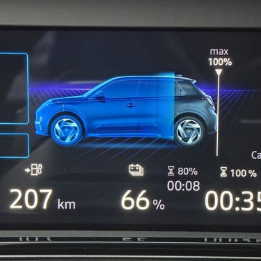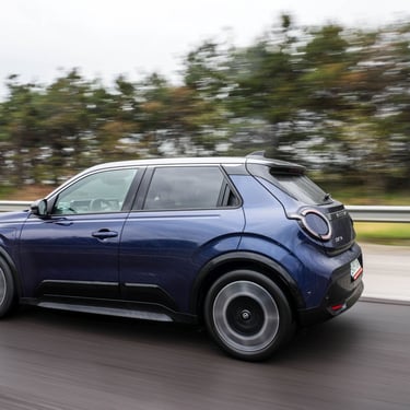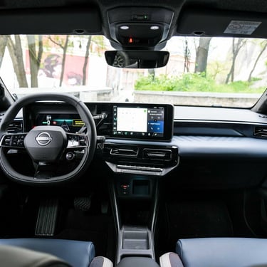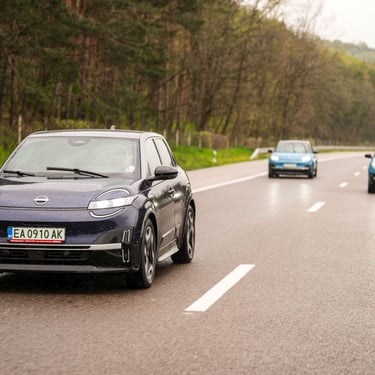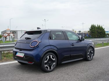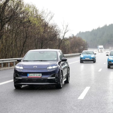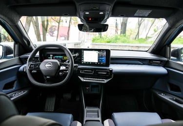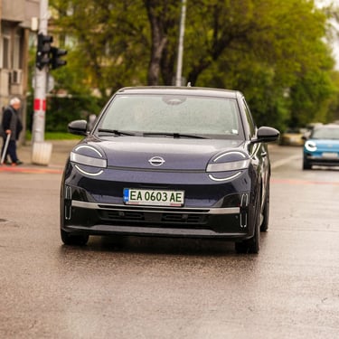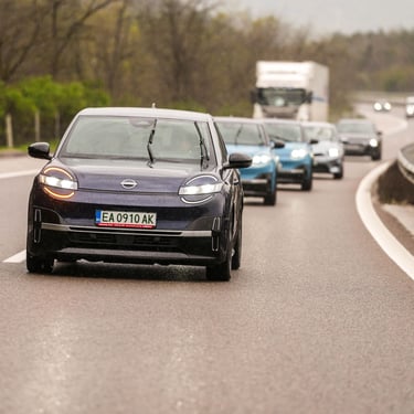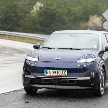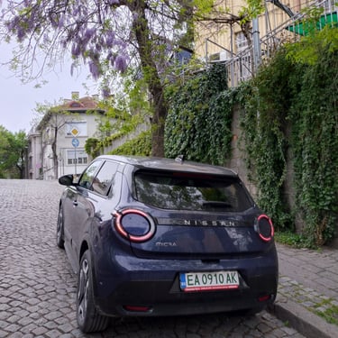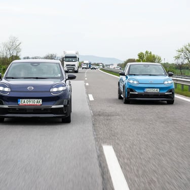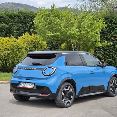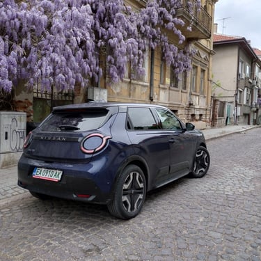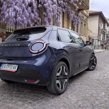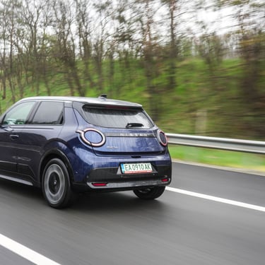 Nisan Micra може да бъде поръчана в базов вариант със 120 к.с. и батерия 40 кВтч, както и в значително по-търсената конфигурация със 150 к.с. мощност и 52 кВтч капацитет на батерията. Задвижването при всички положения е на предните колела, а максиманият въртящ момент при по-мощното изпълнение достига 245 Нм - достатъчно, за да осигури на Micra солиден запас от тяга и достатъчно енергично усещена при ускорение. С едно зареждане автомобилът има пробег близо 420 км по WLTP, като в реални условия показателите са някъде между 200 и 350 км, като резултатът силно зависи от атмосферните условия навън, стила на шофиране, скоростта на движение и топографията на района. За пример може да дадем прибирането ни от центъра на Пловдив - при поддържане на на скорост между 130 и 135 км/ч през по-голямата част от времето, прекарано на магистралата, разходът на електроенергия отчете 17,7 кВтч/100 км - доста добро постижение за автомобил, който в крайна сметка е конструиран много повече с оглед на представянето му в града, отколкото на дълъг път.