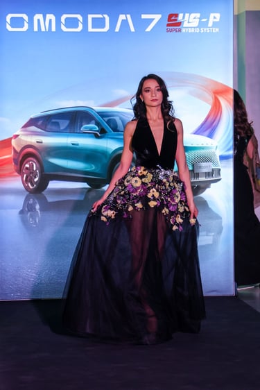 Моделът бе представен на специално гала-събитие в шоурума на OMODA & JAECOO на първия софийски дилър AUTO FRANCE 3000. В унисон с OMODA 7, моделът вдъхновен от дизайнерска философия посветена на силната индивидуалност и модерната естетика, представянето му в София бе съпроводено от впечатляващо модно ревю на уникалните тоалети на изключителната българска дизайнерка Николета Фархат и нейната модна къща NF Maison de Couture. Тоалетите са вдъхновени от красотата и изяществото на българската жена и нейната неподправена идентичност. Деликатни форми, сложна ръчна бродерия и платове с уникални авторски принтове са създадени от въображението на дизайнерката Никoлета Фарxат. През годините нейният талант я води през световните подиуми и я среща с творци от най-висок ранг, като дуайенът на Ливанската висша мода, неповторимият ELIE SAAB, за чиито емблематични колекции шие и днес. Всеки детайл носи белезите на висшата мода – отличителен стил и вечна естетика. Наслада за всички сетива и знак за висока класа и финес.