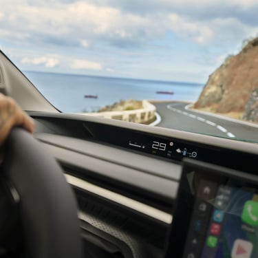 Безопасност и технологии: Новият Citroën Head-Up дисплей проектира цялата важна информация точно под линията на погледа, позволявайки на водача да следи скоростта и данните за пътя, без да отделя очи от него.