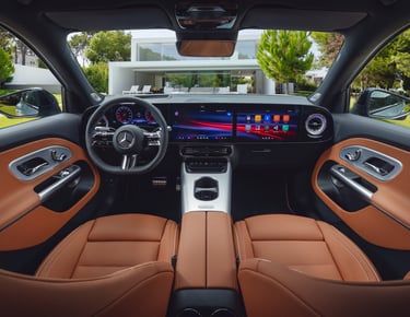 Опционалната система MBUX Superscreen предлага на водача и пътниците високотехнологични екрани с размери от 26 сантиметра за водача, 35.6 сантиметра централен дисплей и 35.6 сантиметра за пасажера. Централната конзола има спортен дизайн и допълнително пространство, а воланът е с ергономичен дизайн. Линиите Progressive, AMG, AMG Plus и пакет Нощ предлагат още повече опции за индивидуализация на новия GLB.