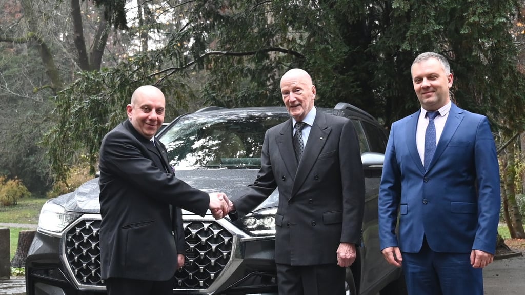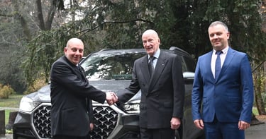 Ключовете на луксозния корейски SUV бяха връчени тържествено от Президента на Ratola – д-р Васил Баров, а ситният дъжд над двореца Врана, съпровождащ момента, се превърна в естествен водосвет – тиха небесна благословия за новия автомобил и пътя пред него. Негово Величество прие своя Rexton с внимание към всеки детайл и видимо удовлетворение от избора си.
