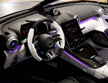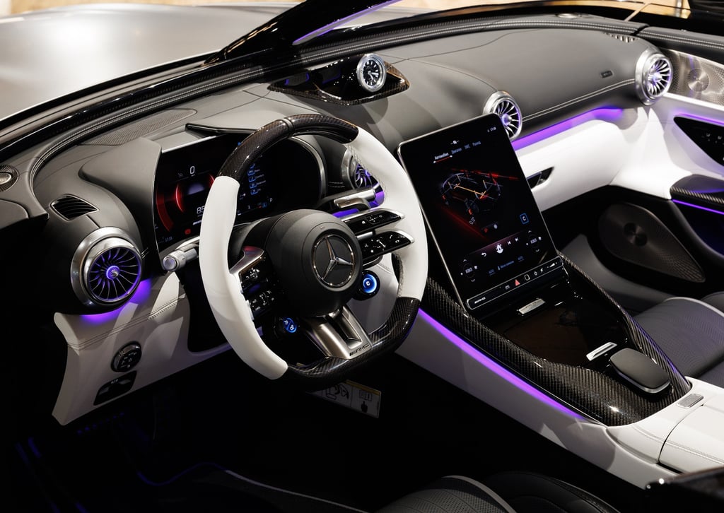 Интериорът е в класическа двуцветна гама и включва спортни седалки AMG Performance със специална тапицерия, премиум материали и уникални дизайнерски акценти. Всеки автомобил има плакет на централната конзола „1 out of 250“, подчертаваща ексклузивния характер на модела.