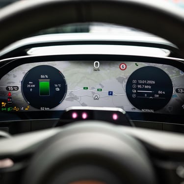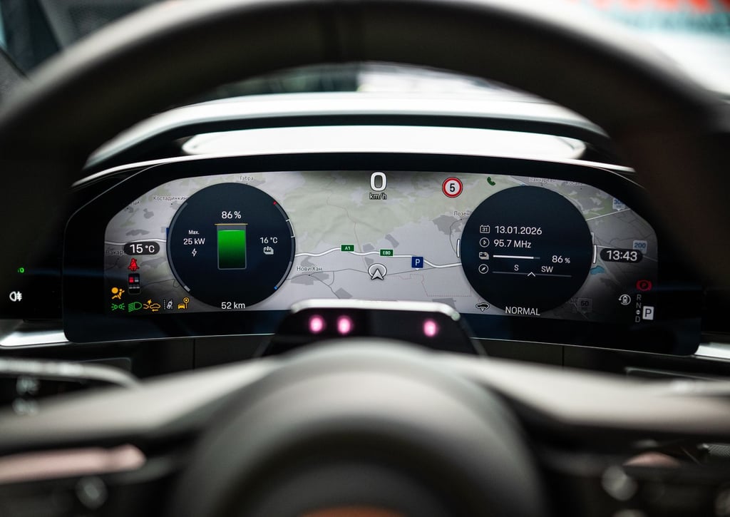Според официалните спецификации, върховият модел Turbo със своята батерия с капацитет 113 кВтч изминава между 566 и 623 км с едно зареждане, а средната консумация е между 20,4 и 22,3 кВтч/100 км. В интерес на истината, не вярвам някой нормален човек да отдава чак толкова голямо значение на въпросните стойности - при наличие на 1156 коня и 1500 нютонметра в главата ми излизат съвсем други въпроси, а не колко, видите ли, харчи тази кола и колко точно километра ще измине, ако галя тяговия педал с перце... Това, което все пак мога да споделя от личен опит, е че по време на пътното изпитание на модела при общо взето смесен цикъл на шофиране (разбирайте - 50 процента нормално каране, особено в населените места и 50 процента по-сериозно настъпване) автомобилът показваше пробег около и над 400 километра, което предвид абсолютно чудовищните показатели за мощност и теглото от 2,7 тона си изглежда направо чудесен показател.