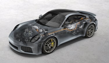 Новият 3,6-литров шестцилиндров боксерен двигател с два турбокомпресора и иновативната T-Hybrid система осигуряват системна мощност от 711 к.с. и максимален въртящ момент от 800 Нм.