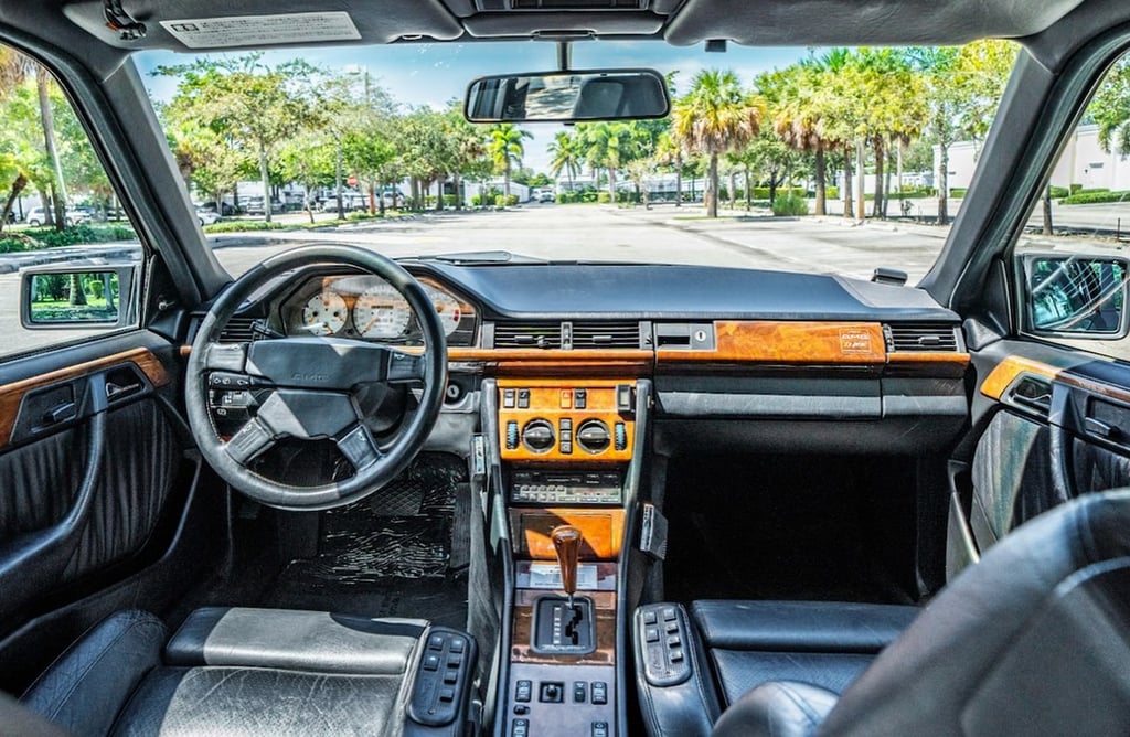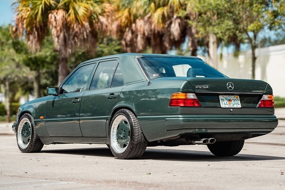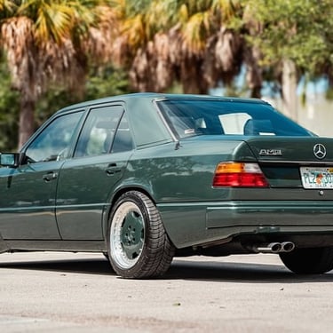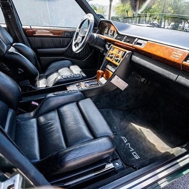 Показаният на снимките Mercedes-Benz 300E 3.4 AMG е поръчан като нов в Япония и е доставен на първия си собственик през вече далечната 1990 година. От 2020 година машината се намира в Щатите, и по-точно във Флорида, и сега търси новия си щастлив притежател. Обява към търга може да видите тук. Още по-любопитното е, че автомобилът е доработен оригинално от AMG Япония! Зеленият цвят на лаковото покритие носи името Pine Green Metallic, като 17-цоловите трикомпонентни джанти AMG са боядисани в същия тон в централната си част. Автомобилът е получил седалки Recaro, спортен волан, AMG спортно приборно табло със скоростомер, разграфен до 300 км/ч, спортна изпускателна система AMG и спортно окачване AMG.