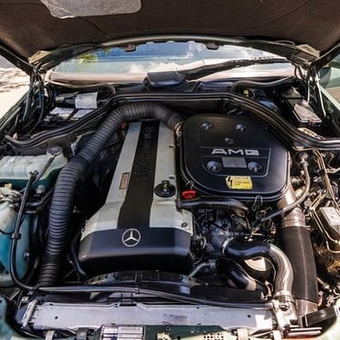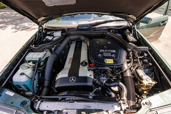 За задвижването отговаря преработен от AMG редови шестцилиндров двигател М104 с увеличен до 3,4 литра работен обем, който развива максимална мощност 268 конски сили и максимален въртящ момент от 330 Нм. Мощта се отдава на задните колела през четиристепенна автоматична трансмисия 722.3. Интериорът е тапициран с черна кожа с код на опцията 261 и разполага с предни електрически регулируеми седалки Recaro Classic, които се предлагат с оригиналната си документация. Дървени апликации от полирана орехова дървесина украсяват централната конзола, скоростния лост, таблото и панелите на вратите. Допълнителните интериорни екстри включват климатик, круиз контрол, електрически регулируемо странично огледало от страната на пътника, задни облегалки за глава, монтиран в багажника CD плейър и аудиосистема Panasonic. Воланът е обновен с Momo M38, ексклузивно за AMG, а на капака на пепелника е разположена плакет AMG.
