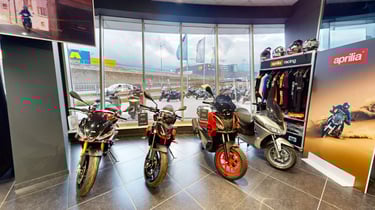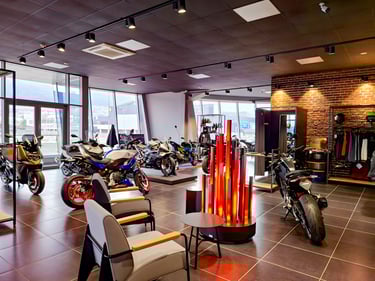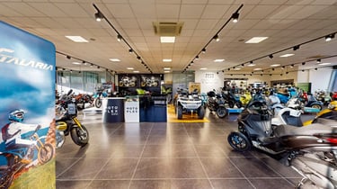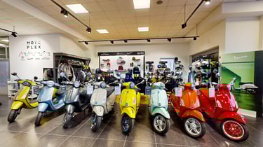 В него по последни стандарти и с богати експозиции в просторни шоуруми са представени двуколесните марки Piaggio, Vespa, Moto Guzzi, Aprilia, Peugeot Motocycles, Talaria и BMW Motorrad, а също и АТВ-тата Benda и широка гама сертифицирани оказионни превозни средства от марките BMW и MINI.