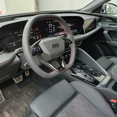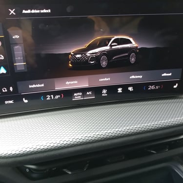 По принцип качеството на интериорното изпълнение е едно от нещата, с които Audi традиционно се отличаваха и изпъкваха пред конкуренцията. Днес времената са малко по-различни, а стремежът към повсеместни икономии не подминава нито един сериен производител, но спокойно може да успокоим публиката, че SQ5 все още е от моделите, които изглеждат отвътре така, както подобава да очакваме от едно истинско Audi - а именно изпипано в детайлите и качествено до най-дребните елементи. Качеството на използваните тапицерии, прецизните шевове, направените с внимание декоративни повърхности, приятният звук при движение на малкото механични елементи във вътрешността на автомобила - усещането за качество категорично си го бива и отговаря на стандартите на марката. Единствено решението бутоните на волана да бъдат част от общи сензорни повърхности, а не самостоятелни бутони, за пореден път ми изглежда като доста неудачно, тъй като нерядко погрешка се оказва, че сте натиснали съседен бутон на този, който всъщност искате да натиснете. Извитите около водача цветни дисплеи са оптимално разположени от гледна точка на ергономията, а наличието на трети екран пред спътника отпред е оригинално и по всяка вероятност забавно за мнозина хрумване.