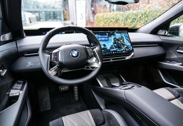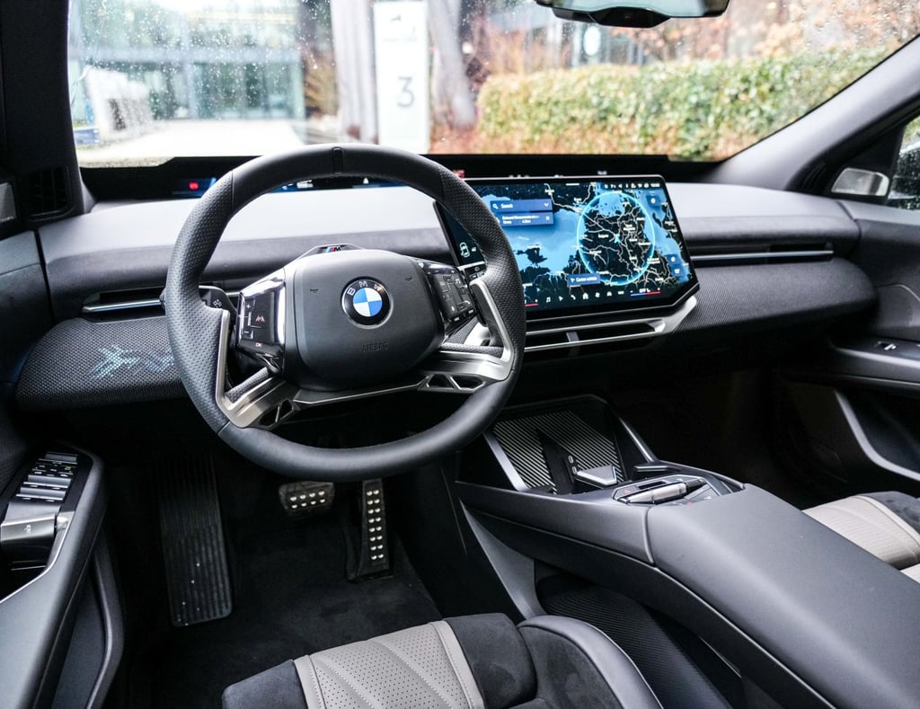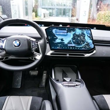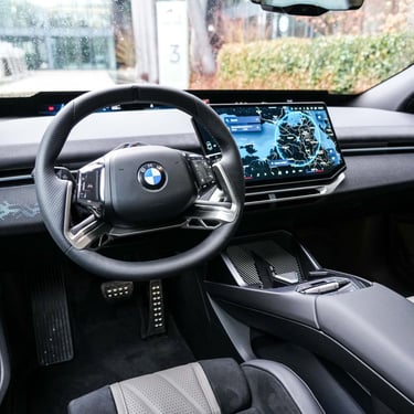 Стилистичната революция стру и от всяко ъгълче на интериора на автомобила, който е доста по-дигитализиран, отколкото бяхме свикнали да виждаме в BMW и изобилства от рециклирани или подлежащи на рециклиране материали. Тук честно казано съм склонен отсега да оспоря част от предимствата на новата концепция - първо защото BMW в продължение на дълги години бяха пристоматиен пример за съвършена ергономия и абсолютен връх по отношение на интуитивността в управлението на многобройните функции в автомобила, а при iX3 нещата не стоят точно така. Да, седалките са страхотни, а позицията на седене е разкошна. Да, екранът с нестандартна форма е направен чудесно и е оптимално разположен. Само че ако преди всичко дори в най-скъпото и съответно най-натъпкано с всевъзможни функции BMW се управляваше с максимална лекота и без отклоняване на вниманието, сега ровенето из менюта, подменюта и техните под-под-менюта е факт и тук. А идеята за заместването на повече или по-малко традиционнното табло с инструменти зад волана с ивица под челното стъкло не е най-удобното нещо на света - съчетанието от нормално табло плюс head-up дисплей лично за мен е много по-приятно като начин на възприемане от зрението и мозъка на водача. Същото се отнася за дизайна, който макар и несъмнено оригинален е с една идея самоцелен и излишно технократски - ако търсите уют и непреходна елегантност, каквато можете да откриете в предишната Серия 7 или дори днес в едно Х5 или Серия 8 например, тук няма ги откриете, не и във формата, която очаквате и вероятно търсите. Не казвам, че човек не се чувства удобно в този автомобил - напротив, повечето измерими форми на лукс са налични, при това в изобилие. Въпросът е, че чисто субективни фактори като основаното на безпогрешна логика взаимодействие с автомобила и усещането за естетическа наслада от материалите и изчистения дизайн тук не са на висотата, на която добре знаем, че BMW са способни и многократно са ме удивлявали с това колко добре могат да бъдат направени интериорите на техните автомобили. Иначе пък вътрешният простор в дългия малко под 4,80 метра електрически SUV е поне толкова разточителен, колкото в споменатото току що Х5 и това е огромен плюс в полза на модела.
