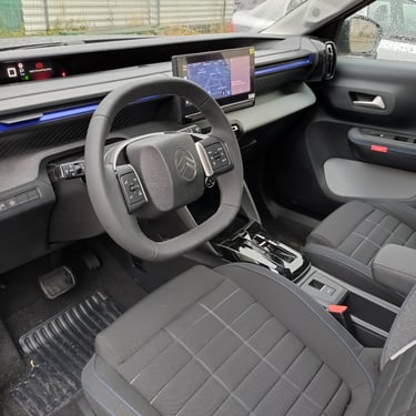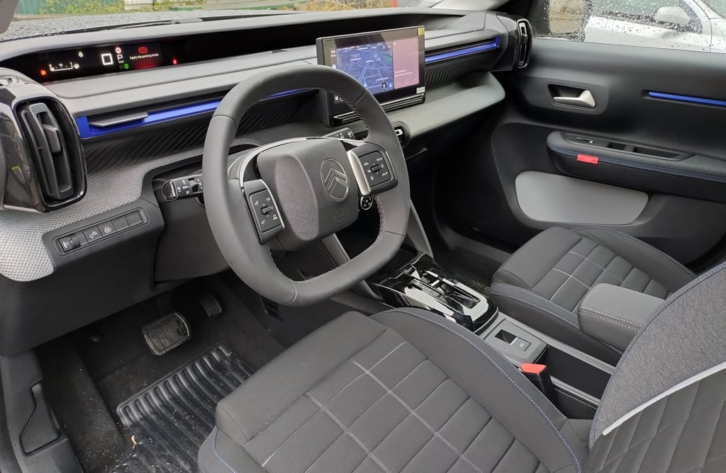 Като вътрешен простор моделът не предлага чудеса - мястото в салона е стандартно за класа, същото се отнася за вместимостта на багажника от 310 литра. За сметка на това, както вече споменахме, самите седалки са изненадващо удобни, а сравнително високата каросерия позволява постигане на доста прилично пространство за главите. Високото разположение на местата в купето пък прибавя към това и доста добра видимост. Последното има принос за приятното усещане, което носи управлението на автомобила в градски условия - С3 се кара с лекота, демонстрирайки чудесна маневреност и доста чевръсто пътно поведение. Возията също е приятна, макар че "онзи" комфорт от златните години на Citroën си остава недостижим. Нещото, с което автомобилът ще успее да ви изненада истински, е неочакваната му увереност по междуградските пътища и дори на магистрала - автомобилът остава стабилен и уверен и при високи скорости, дори не се противи на по-спортен стил на каране. Същевременно нито нивото на шум в купето, нито возията могат по някакъв начин да бъдат обвинени в липса на достатъчно комфолт. Трициилидровият турбомотор в комбинация с 48-волтова система мек хибрид и шестстепенна трансмисия с два съединителя върши работата си компенентно и ненатрапчиво, осигурявайки едновремено добър темперамент и напълно прилична тяга при ускорение. Средният разход при смесен цикъл на шофиране е между 6 и 6,5 л/100 км, но при подходящи условия лесно можете да постигнете и по-ниски стойности. Напълно очаквано, нуждата оп повече мощ по магистрала върви ръка за ръка с леко увеличаване на консумацията, но дори и тогава С3 рядко ще ви даде стойност над 7 на сто.