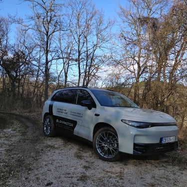 В последните месеци вече ви запознахме подробно с първите ни впечатления от два от моделите на един от най-новите китайски производители, представени официално на българския пазар - набиращата все по-голяма популярност в световен мащаб млада компания Leapmotor. Както градският електромобил в джобен формат T03, така и компактният електрически SUV модел В10 успяха да ни впечатлят неимоверно - особено като се има предвид че говорим за автомобили, създадени от марка с едва десетинагодишна история. Сега идва ред да ви разкажем за третия и най-голям измежду наличните към момента в страната ни предложения на марката - SUV моделът от среден клас С10.