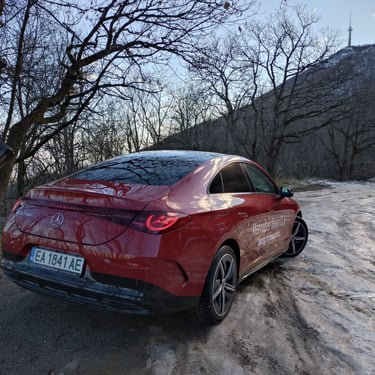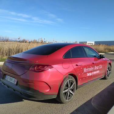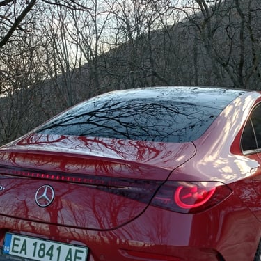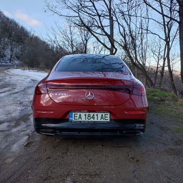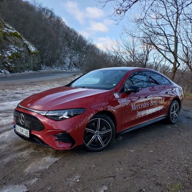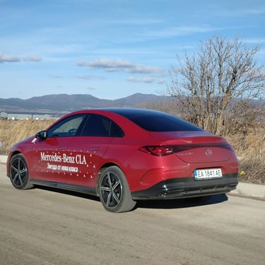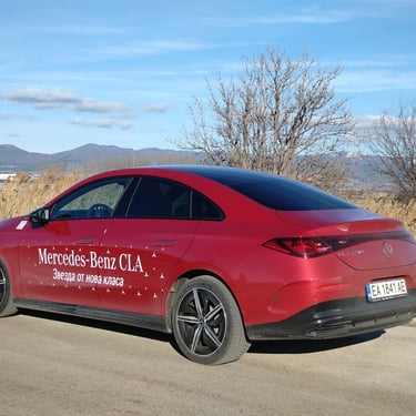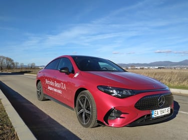 Промяната на мнението ми за този автомобил далеч не се случи изведнъж - защото, продължавайки да бъда напълно честен, дизайнът на третата генерация на CLA далеч не ме грабва от пръв поглед. Абсолютен факт - моделът има много елегантен и обтекаем силует, който изглежда чудесно, а и има великолепни аеродинамични показатели - фактор от огромно значение за пробега и ефективността на всеки електромобил. Оформените като трилъча звезда елементи вътре в предните и задните светлини също изглеждат супер ефектно. И все пак - детайли като затворената предна решетка в черно, окичена с десетки малки звездички, както и толкова експлоатираната напоследък тема със светлинната ивица, свързваща предните светлини, някак си не ми се връзват особено с класическата и непреходна елегантност на един пълнокръвен Mercedes - същото, между другото, смятам и за огромните екрани и частта на таблото пред пасажера, което също е изрисувано с прословутите звездички с три лъча. Няма спор - стилистиката на CLA привлича и задържа погледите върху себе си, а това дали всички нейни елементи са действително стилово издържани, е въпрос на гледна точка и лични възприятия. По отношение на друг, поне толкова важен фактор обаче този път не може да има две мнения - става дума за качеството. Усещане за автомобил от нисък клас, компромиси с дадени детайли - това е минало. Надявам се - минало свършено. Като започнем от фугите по каросерията и стигнем до най-дребните неща в интериора - автомобилът е направен солидно и с подобаващо за един Mercedes качество, материалите също са подбрани отлично. Да, тук-там още могат да се видят примери за ненужно поне според мен пестене на разходи - например двурежимните бутони за отваряне на предните и задните прозорци от шофьорската врата вместо наличието на нормални четири бутона, но като цяло качеството е на висота, а неприятни скърцания и потропвания няма дори по много разбит паваж - с изключение на съвсем слабо жужене от областта на тапицерията на тавана и огледалото за обратно виждане.