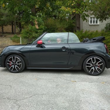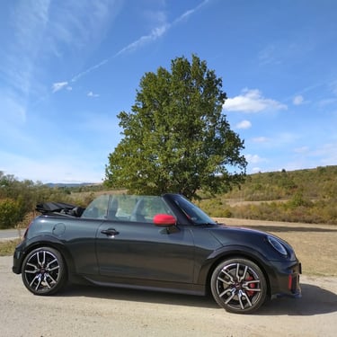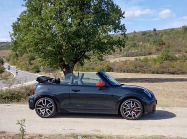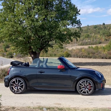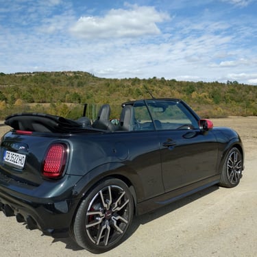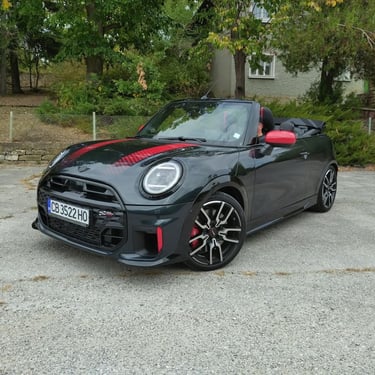 Неведнъж съм споделял мнението, че при последните две поколения на класическото малко MINI, най-чаровният и най-неустоим като асортимент от предлагани качества всъщност е вариантът кабриолет. Не че не смятах същото и за така любимото ми поколение R56, но там човек можеше с основание да бъде разколебан между класическия хечбек, ако търси изчистен спортен характер, кабриолета с 2 плюс 2 места, ако в допълнение харесва и разходките под открито небе, и просъществувалата доста кратко време модификация Roadster, която разтуптяваше сърцата на почитателите на традиционните британски роудтъри и която, ако трябва да кажа с ръка на сърцето, е най-любимото ми модерно MINI въобще. Но да се върнем към актуалното издание на MINI Cabrio - при него получавате накуп цялото възможно очарование на хечбека, плюс възможността да можете да бъдете по-близо до природата и да изживявате удоволствието от страхотната управляемост по един още по-нефилтриран начин. А ако става дума за върховото спортно изпълнение John Cooper Works Cabrio, тук говорим за един маскиран като симпатична играчка малък спортен автомобил, който носи в себе си чисти състезателни гени. И така трябва да бъде, когато един автомобил носи името на знаменития Джон Купър...