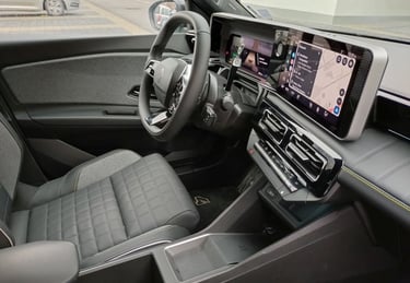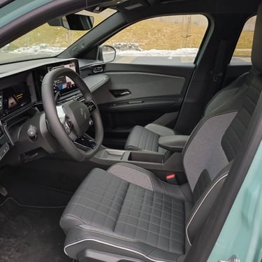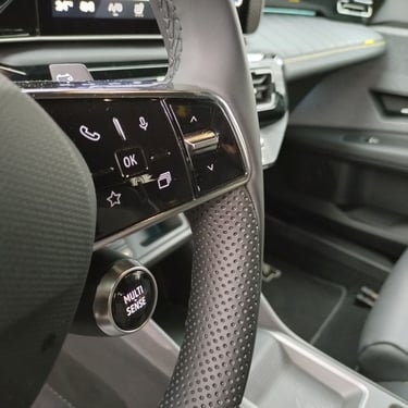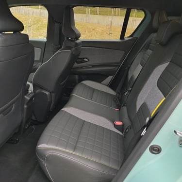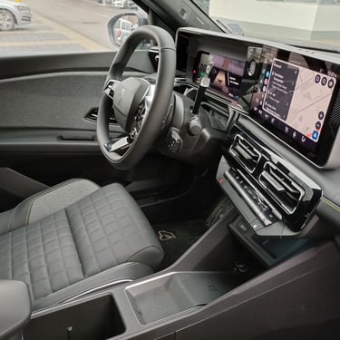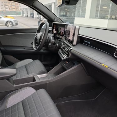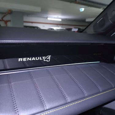След като вече съм добре запознат с възможностите на възроденото Renault 5, тук нямам свръхочаквания по отношение на функционалността и вътрешния простор (тъй като 5 Е-Tech Electric независимо от всичкия си чар си остава кола предимно за градска употреба с доста оскъден вътрешен обем), но все пак се надявам, че значително по-ъгловатите форми на каросерията с по-изправени странични части са освободили поне малко повече място за пасажерите и техния багаж. Е, ако трябва да започнем точно от този показател, то Renault 4 E-Tech Electric по подобие на малкия си събрат категорично няма как да бъде наречен чудо по отношение на интелигентното оползотворяване на наличния обем - което, обективно погледнато, е пълна противоположност на легендарния му предшественик, който десетилетия наред радва цели поколения с един от най-просторните интериори, предлагани дотогава от малък автомобил. Да, вътре е доста по-широко, отколкото в 5 Е-Tech Electric, багажникът също е по-голям и по-годен за семейна употреба, но да говорим за изобилие от свободно място е доста пресилено - ако отпред седи по-висок човек, зад него е възможно да се настани единствено малко дете. Затова пък, удобството и обзобът на предния ред седалки са почти разглезващи за представител на малкия клас. Също както при "петицата", и тук се забелязват множество носталгични елементи като шевовете на тапицеията, характерното оформление на таблото пред пасажера, оцветената в цветовете на френския трибагреник малка ръкохватка на лостчето за смяна на поцициите на движение зад волана и т.н. Макар и не особено нашироко, в този автомобил човек се чувства наистина уютно и удобно - поне на първия ред.