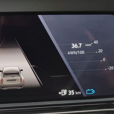 По подобие на Renault 5 E-Tech Electric, "четворката" също дава на клиентите избор между малка и голяма батерия. "Малката" е с капацитет 40 кВт, мощността е 120 к.с., а оборудването може да бъде само базово. Въпросният най-достъпен вариант стартира от приемливите 30 990 евро. По-атрактивният вариант идва с батерия 52 кВтч, мощност 150 к.с. и може да бъде поръчван в три варианта на обзавеждането. Цените се движат между 33 490 и 37 990 евро. Според WLTP, обещаният пробег с едно завеждане при тази модификация е около 400 км, а средната консумация на електроенергия - към 16 кВтч/100 км. Съдейки по досегашния си опит с почти аналогичния като техника Renault 5 E-Tech Electric, честно казано очаквах реален пробег от между 200 и 300 км, което може и да не отговаря на обещанията по официални норми, но си е съвсем приличен и вече постиган от мен показател. Само че се случи така, че карах автомобила при външни температури между минус шест и нула градуса, а колата нощува два дни навън. Да, това неминуемо намалява пробега на всеки електрически автомобил, а отсъствието на серийна термопомпа при електромобилите на Renault е потенциална пречка, но особено предвид факта, че при по-високите нива на екипировка термопомпата вече е стандарт, реалностите, откровено казано, успяха да ме озадачат - според бордовия компютър разходът отчете огромната стойност от около 37 кВтч/100 км, а километрите оставащ се топяха като спестяванията на средностатистически български гражданин в периода 1996-1997 година - със скоростта на въртяща се ротативка. Подчертавам - карал съм автомобила само в комфортен режим, само в града, не съм го "настъпвал" сериозно и съм се старал да поддържам смислен маниер на шофиране. При всичките ми усилия обаче, практическият пробег в зимни условия се оказа около или малко над 100 км... Непонятно как, но дори спрян за два часа навън при температура около минус два-минус три градуса по Целзий, при последващо стартиране колата губеше по 2-3 процента от заряда на батерията си, а след пренощуване загубава превишаваше 7 процента. За сравнение - няколко дни по-късно, при същите метеорологични условия, шофирах Mercedes CLA, който за цяла нощ губеше едва окол процент от заряда си, а при нощ навън на температура минус тринайсет гпадуса и силен северен вятър със сняг Hyundai IONIQ 9 изгуби за цяла нощ... също точно един процент. Като всичко това е доста жалко, тъй като сам по себе си Renault 4 E-Tech Electric се придвижва приятно безшумно, енергично и плавно - и при по-добро време навън несъмнено би се показал в много по-добра форма.