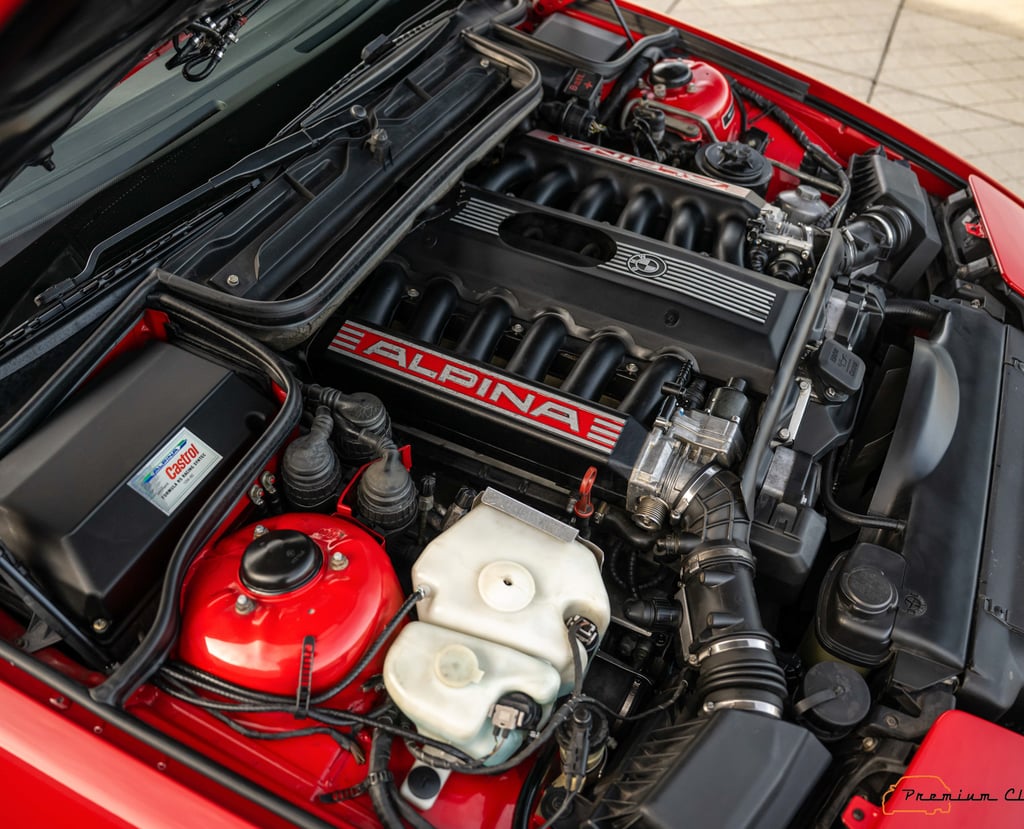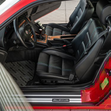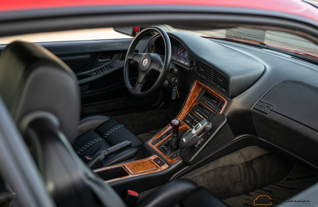 В момента при нидерланския търговец на екзотични автомобили Premium Classics може да бъде закупен номер две от 57-те произведени Alpina B12 5.7 на базата на Серия 8. Линк към обявата можете да видите тук. Автомобилът изглежда в абсолютно безупречно състояние и би бил прекрасна гледка на всеки конкурс за елегантност. Лаковото покритие е в специален цвят Rosso Chiaro, който на практика е идентичен с класическото яркочервено на Ferrari - между другото, това е първият автомобил на Alpina, боядисан в този рядък цвят. Колата е със спортна автоматична трансмисия Shift-Tronic - всъщност именно в този екземпляр въпросната доработена от Alpina спортна трансмисия за първи път е вградена в производствен автомобил. Интериорът е черен, с елегантни контрастни шевове и изящни декорации от благородна дървесина.
