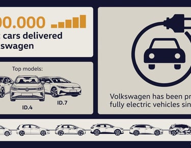 Volkswagen започна своя път към електрическата мобилност още през 2013 г. с пускането на e-up! и оттогава систематично разширява своето изцяло електрическо портфолио. Двата милиона доставени електромобила включват не само настоящите модели от семейството ID., но и по-ранни електрически модели като e-up! и e-Golf. Днес Volkswagen заема водеща позиция при електрическите автомобили в Германия и Европа и е сред най-големите производители на електромобили в световен мащаб.