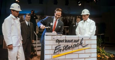 В този контекст директното участие на марката в Айзенах през 1990 г. – годината на обединението – е напълно логично. През март 1990 г. е създадена компанията Opel-AWE-Planungs-Gesellschaft с цел развитие на сътрудничеството между бившия автомобилен завод Айзенах (AWE) и Opel. Само два дни след официалното обединение – на 5 октомври 1990 г. – първият Opel Vectra слиза от производствената линия в завод на AWE. Четири месеца по-късно, през февруари 1991 г., е положен основният камък на новия завод.